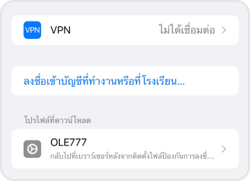 หากได้รับแจ้งด้วยข้อความ "เพย์โหลด MDM ไม่ตรงกัน" ให้ลบโปรไฟล์ที่มีอยู่โดยแตะที่โปรไฟล์ที่มีอยู่จากนั้นแตะลบการจัดการและยืนยัน